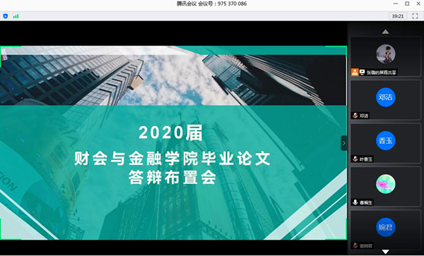 毕业论文是本科教育的重要组成部分,是考核人才培养质量的重要指标,本次会议的召开,为全面提升本次线上答辩工作的质量,为财会与金融学院即将进行的线上答辩工作奠定了扎实基础。