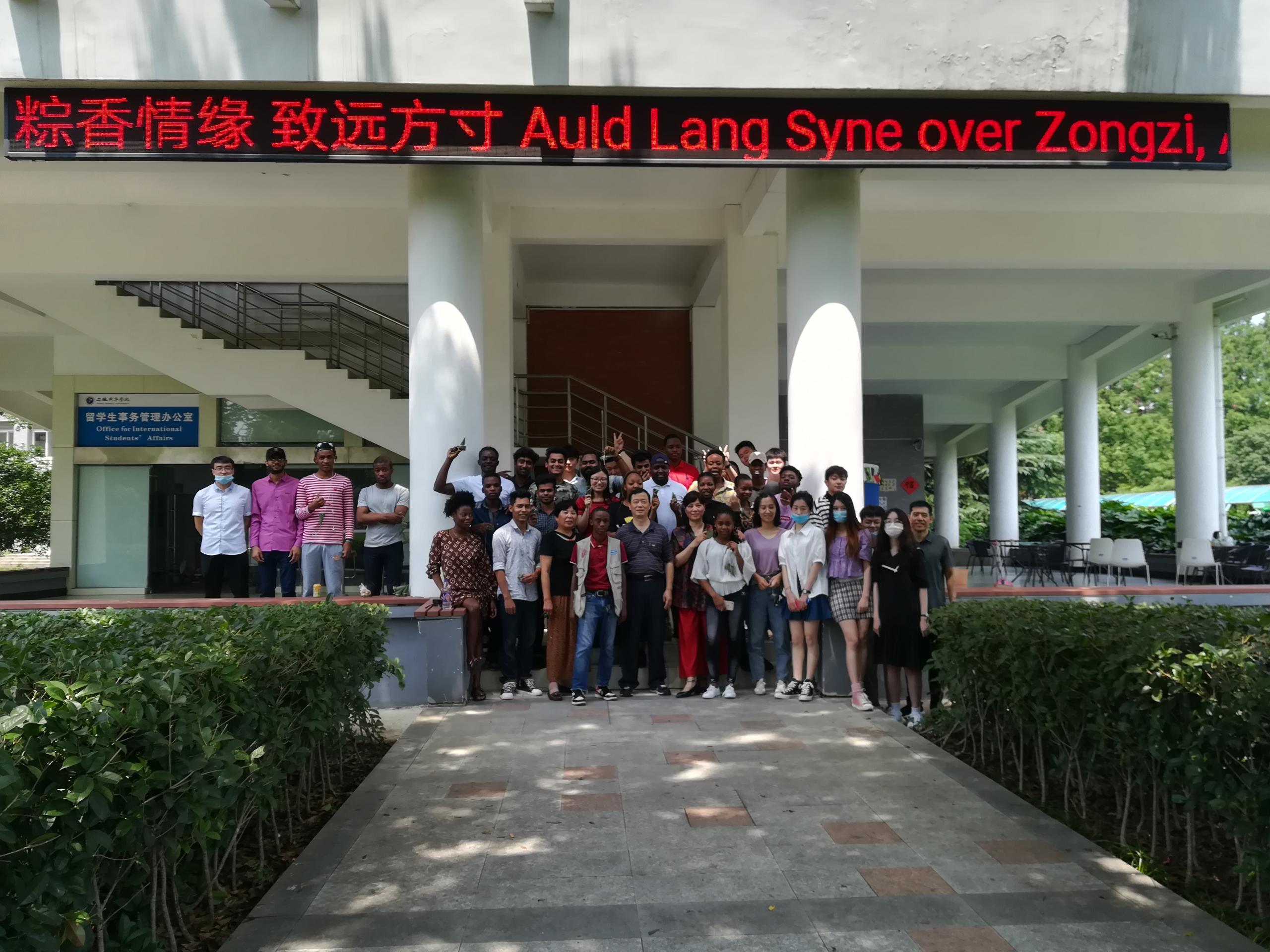 随后,中外学生们一边品尝着新鲜美味的粽子,一边举行了小范围的联欢活动。大家各自展示了自己拿手节目,有的弹吉他,有的跳民族舞,有的唱歌。大家一起度过了一个特殊时期的端午节。来自巴基斯坦的木尚是第一次体验包粽子,他说,包粽子的过程很有趣,端午节让他感受到了浓浓的中国情,同时也对中华传统文化产生了浓厚的兴趣。中国学生宋长彪说,虽然这次特殊原因不能和家人一起过节,但是在学校感受到了大家庭的温暖,感谢学校和老师们精心安排,大家过的很开心。