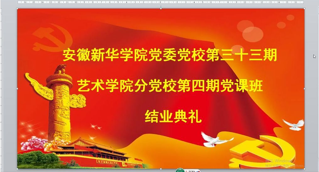 本网讯(通讯员:高扬)6月29日,bat365在线中国官网登录入口第三十三期艺术学院分党校第四期入党积极分子培训班结业典礼于腾讯会议线上举行。艺术学院党总支书记许存福、艺术学院党总支副书记彭智、艺术学院党总支纪检委员余新泳、艺术学院党总支宣传委员刘刚、艺术学院党总支组织员张大勇、艺术学院第一学生党支部书记张小菊及本期培训班全体成员出席了本次结业典礼,会议由艺术学院第二学生支部书记、本期党校班主任高扬主持。
