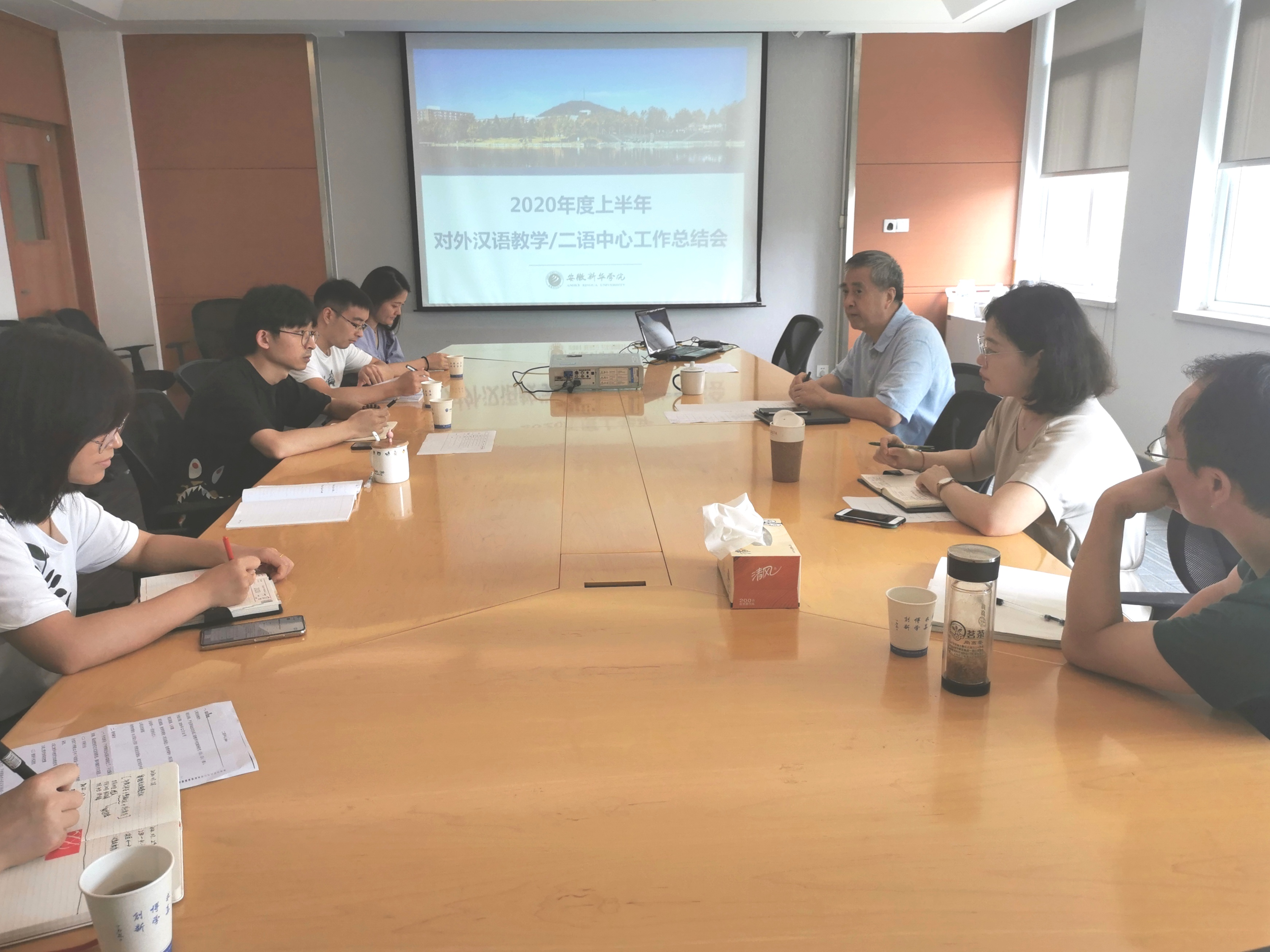 本网讯(通讯员:石丽丽)为了总结本学期bat365汉语教学及汉语作为第二语言教学研究中心工作,同时合理布置下半年的工作。2020年7月31日上午在国际教育学院会议室召开了工作会议,国际教育学院院长范东生、院长助理黄喆、对外汉语教研室以及二语中心全体成员参会。