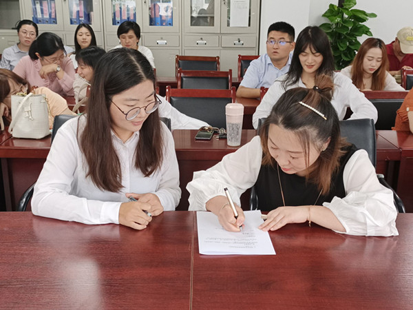 接着,财会与金融学院近期新进员工4名,学院分别安排了导师,也借此机会,开展拜师仪式。师带徒,是学校关爱、帮助年轻职工成功的一个重要途径;是打造实力强,专业硬的教师团队的有效方法,也是学校有效配置人才资源,建强人才队伍,促进跨越发展的关键举措。在温馨友爱的拜师仪式中,会议气氛以及教师情绪都渲染到了高潮。怀着教师的光荣使命感,一对对师徒庄严承诺,在今后的日子里履行教师职责,尽其所能,教其所知,全力以赴的投入到教师工作中,争取做一名优秀的建设者。