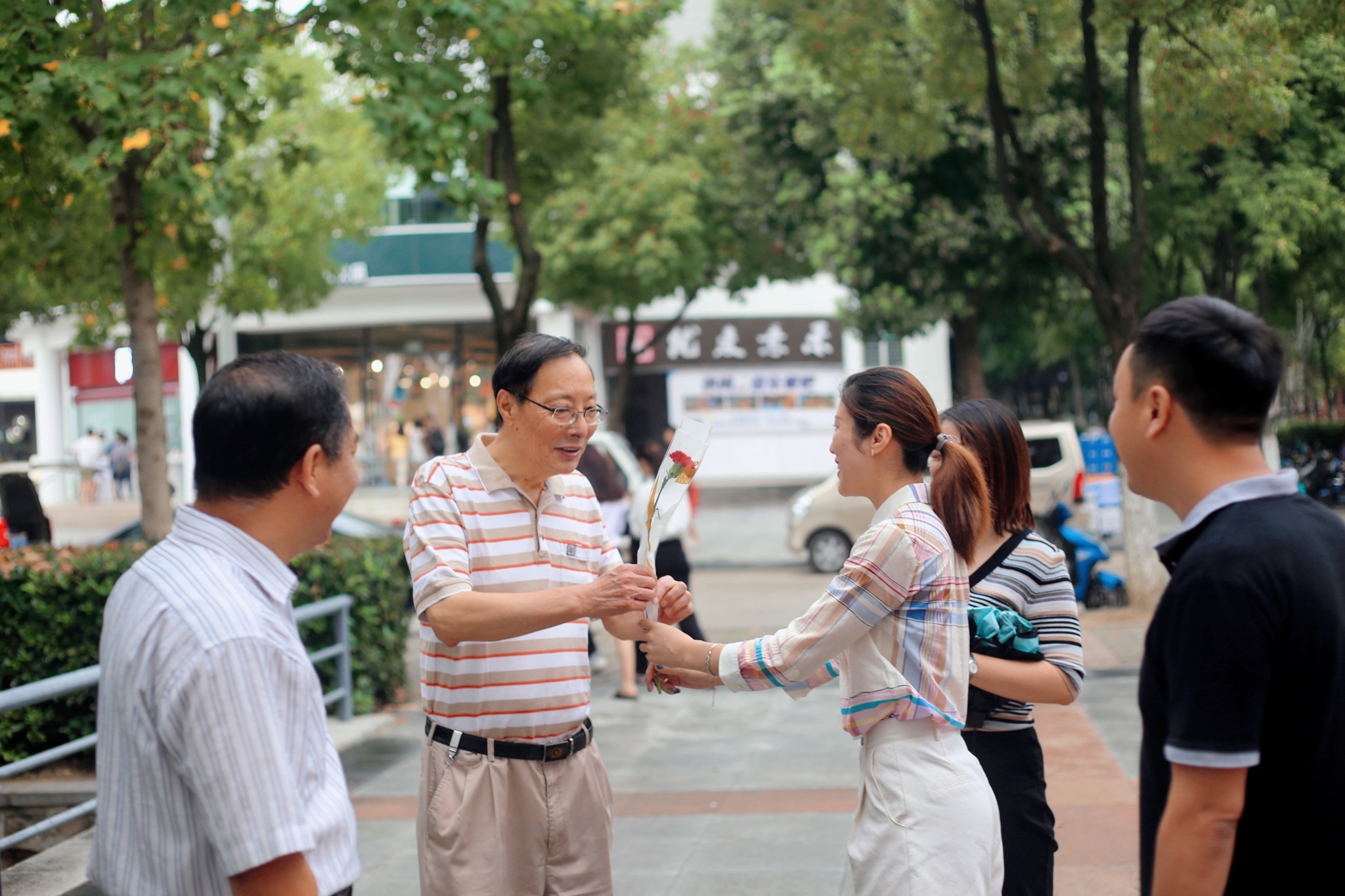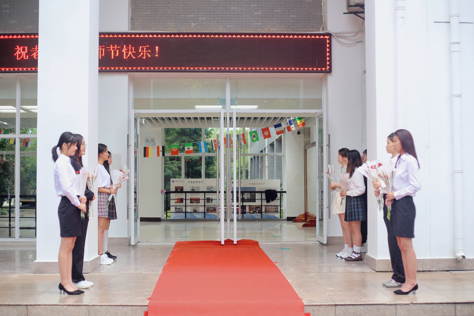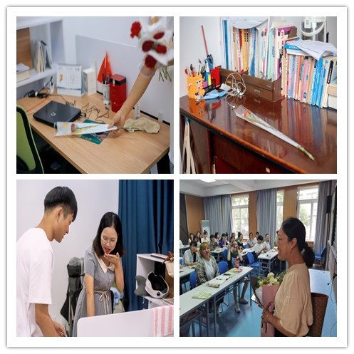 9月10日上午,外国语学院全体领导班子,为每位进入教学楼的教师献花,表达节日祝福。学生社团组织各班级,在上课前10分钟,为第一节课授课的教师悄悄地准备了惊喜,教师们纷纷表示感动。当日上午的第一课中,bat365在线中国官网登录入口校长石秀和代表学校进行教学检查,石校长走进教室向一线教师表达节日祝福,并与课堂学生亲切交谈,教师和学生们都表示很感动。