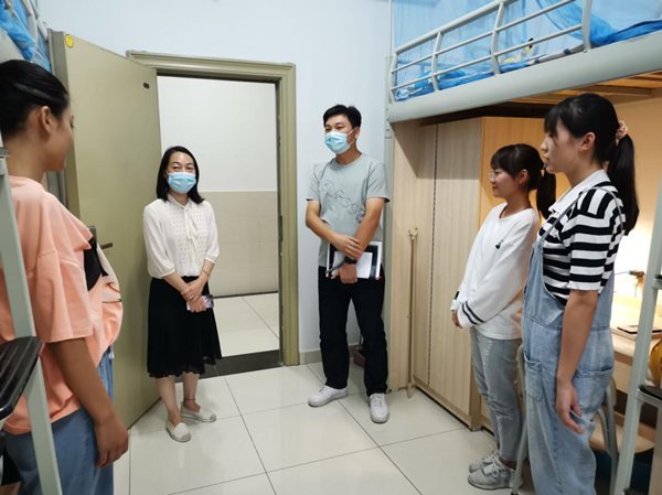 在与学生交谈的过程中,王丽副校长和吕翔副院长提醒新生要注意安全、保管好贵重物品;注意身体健康,锻炼身体;保持宿舍环境整洁,安全用电。