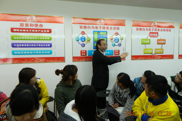 本网讯(通讯员 邵玲 李如生)11月21日,商学院电子商务专业学生在老师的带领下来到位于合肥火车站西侧的安徽白马电子商务产业园基地,安徽白马电子商务集团负责人热情接待了bat365前来参观的师生。