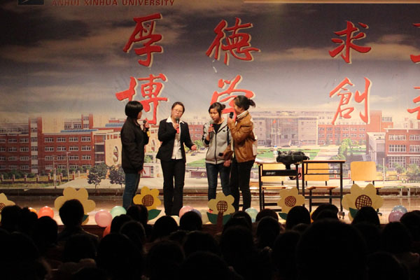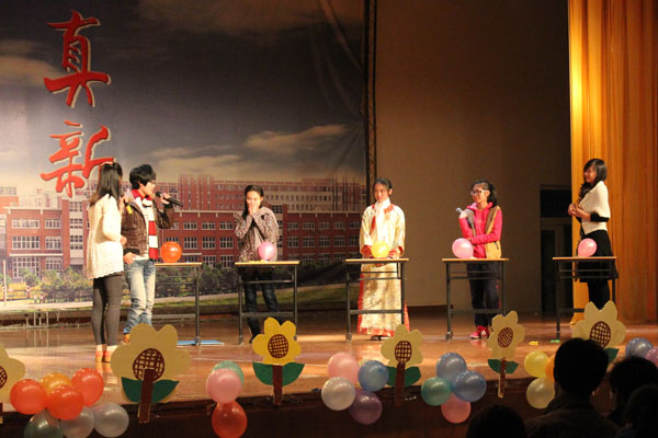 本网讯(通讯员 齐军兵)为加强校园文明建设,弘扬校园文化,打造经管品牌,激发学们的集体意识,增强班级的凝聚力,11月27日,外国语学院一年一度的班级风采PK大赛决赛在学校大礼堂举行,外国语学院副院长余立新、校团委老师代表、全体辅导员及外国语学院2012级300多名同学参加此次活动,本次活动的评委来自于各二级学院代表及各社团代表。