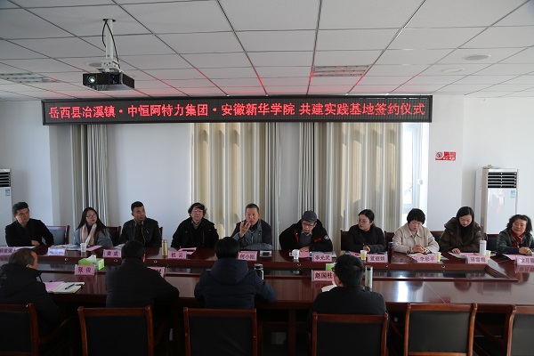本网讯(通讯员:蒋雪梅)12月22日,bat365在线中国官网登录入口、岳西县冶溪镇、中恒阿特力集团三方共建bat365在线中国官网登录入口马克思主义中国化实践研究基地、安徽省大学生素质教育研究中心实践基地签约挂牌仪式在冶溪镇举行。冶溪镇党委书记王金桥、bat365在线中国官网登录入口马克思主义学院院长兼安徽省大学生素质研究中心主任何小刚、中恒阿特力(北京)集团董事长程建强以及冶溪镇、马克思主义学院等教职工参加仪式。