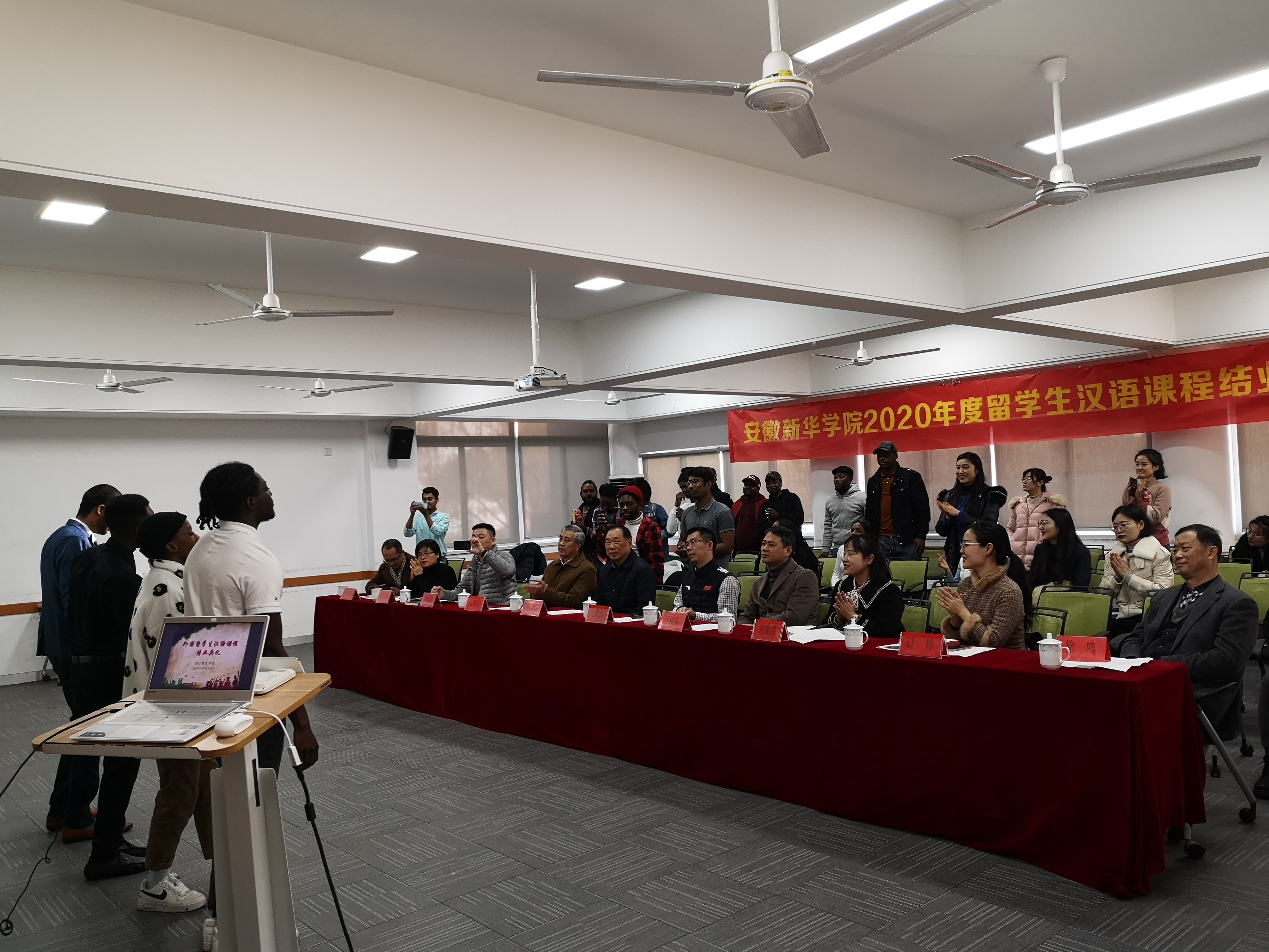 本网讯(通讯员:窦月月)1月13日上午,国际教育学院举行了bat365在线中国官网登录入口外国留学生汉语学习结业典礼,副校长方纯洁、副校长杨世国、校长助理汪俊东、国际处处长国际教育学院执行院长徐鸣、城市建设学院执行院长邵玲、大数据与人工智能学院吕翔、电子工程学院/智能制造学院许苗苗,商学院翟荣兵、国教院院长范东生、学生处处长助理计羚、国教院和国际处全体教职工及全体留学生参加了此次典礼,典礼由徐鸣主持。