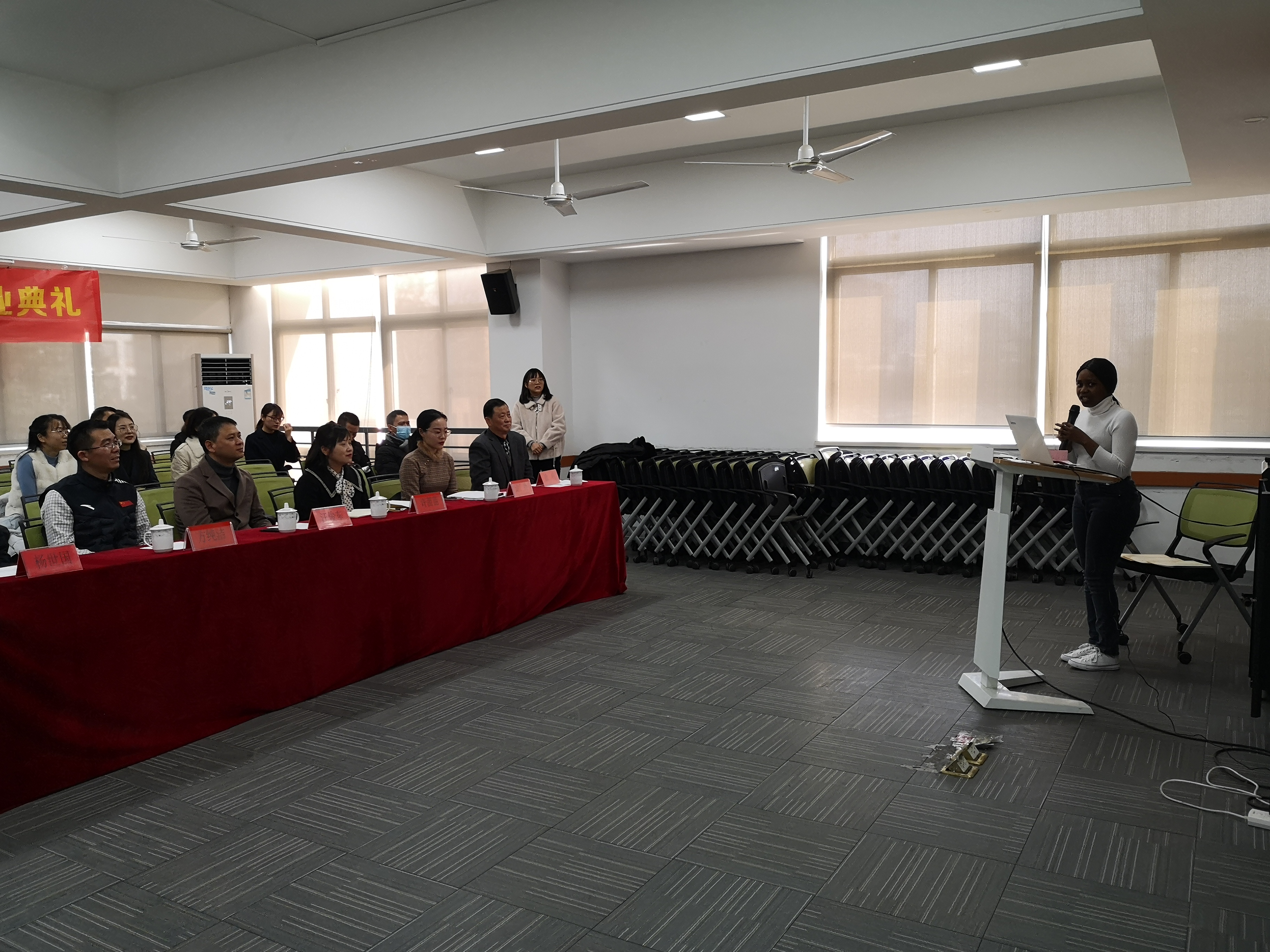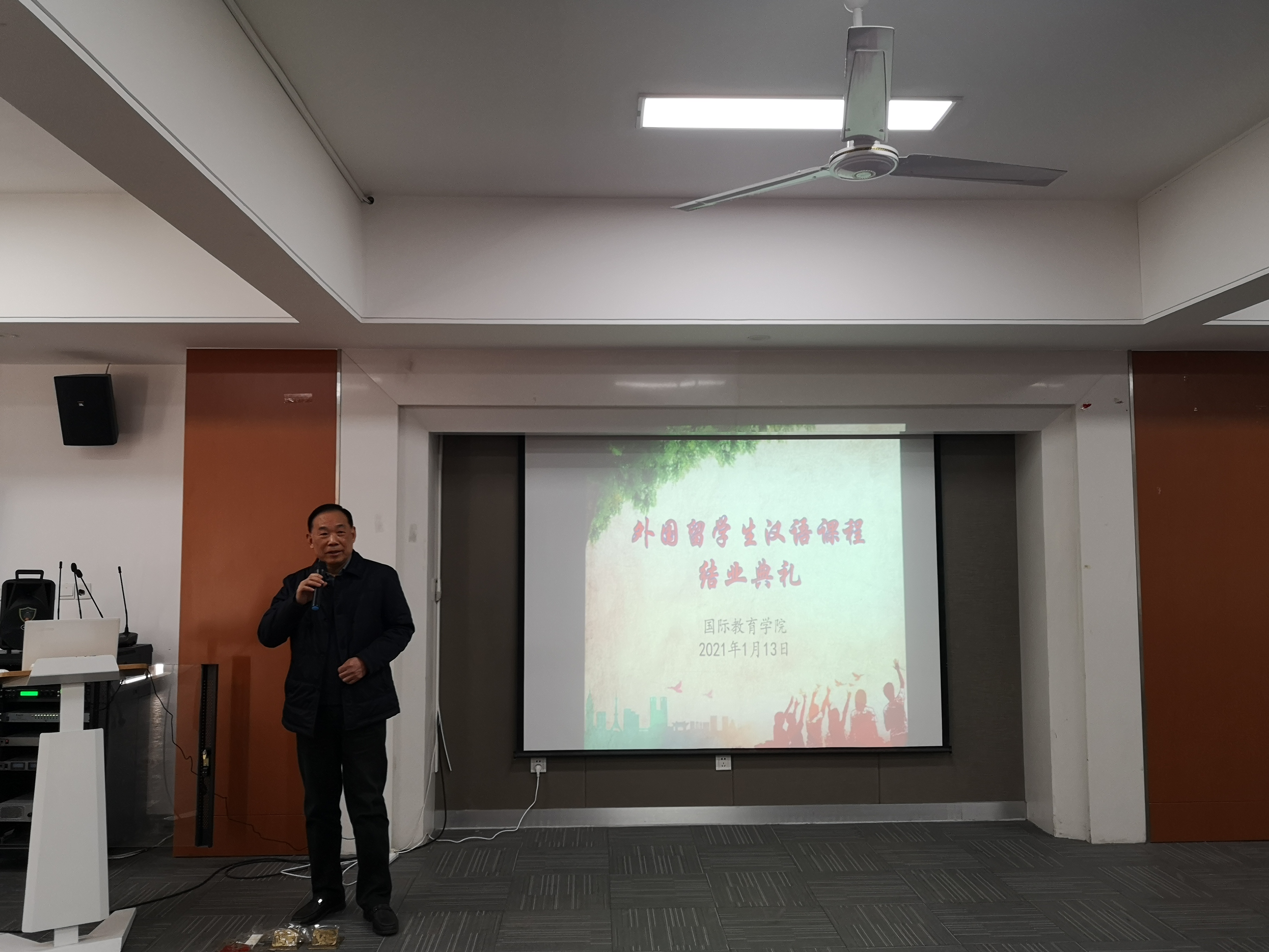 最后,杨世国总结讲话,杨校长首先恭喜留学生通过HSK四级考试,其次肯定了国教院全体教师的教学成果,最后对新华留学生项目提出希望,并号召全体教职员工充满信心去奋斗。