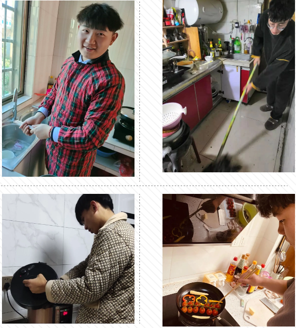 2020级电子信息工程1班李子旭同学,利用假期参与了社区的疫情防控工作,义务参与社区执勤,冒着寒风,一遍遍的登记、核查来往人员的身份信息,劳动的过程是辛苦的,但收获的经历是难忘的。此外,还有20、19级的全体同学,他们有的参与家庭大扫除、有的主动承担起烹调年夜饭的重任,他们纷纷用照片、视频记录下了这些宝贵的成长记忆。