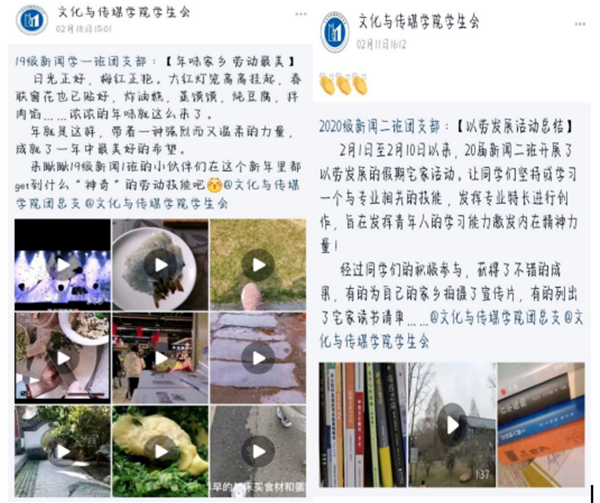 本网讯(通讯员:曹曼)为深入贯彻落实习近平总书记关于劳动教育的重要论述,全面贯彻党的教育方针,加快构建德智体美劳全面培养的教育体系,充分发挥第二课堂作用,文化与传媒学院于1月29日至3月1日寒假期间开展了一系列劳动教育主题活动。