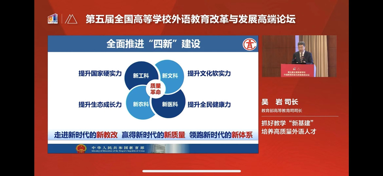 本届论坛主题为“铸教、铸人、铸魂”由主旨报告和8场专题论坛组成。教育部高等教育司吴岩司长就“抓好教学‘新基建’培养高质量外语人才”发表主旨报告,他指出发展外语教育是全球共识以及外语教育的重要任务,高等教育发展要凸显高等外语教育工具性价值、人文性价值、国际性价值,从抓专业质量,优化专业结构,抓好质量标准,要具备国际视野。