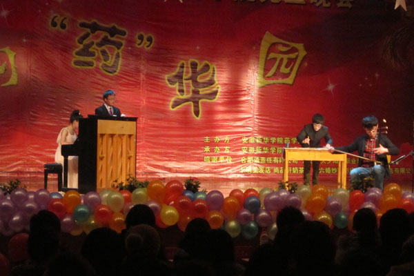 “恭喜恭喜红火年,欢欢乐乐过大年”。一首喜庆欢乐的《欢乐中国年》作为开场曲,尖叫声、喝彩声此起彼伏。随后,药学院院长张国升教授在音乐结束后,为本场晚会致开幕词,他对过去一年中药学院的老师与同学们付出的努力做出了肯定和表扬,也对未来药学院的发展做了规划,为华园师生送上了新年祝福。