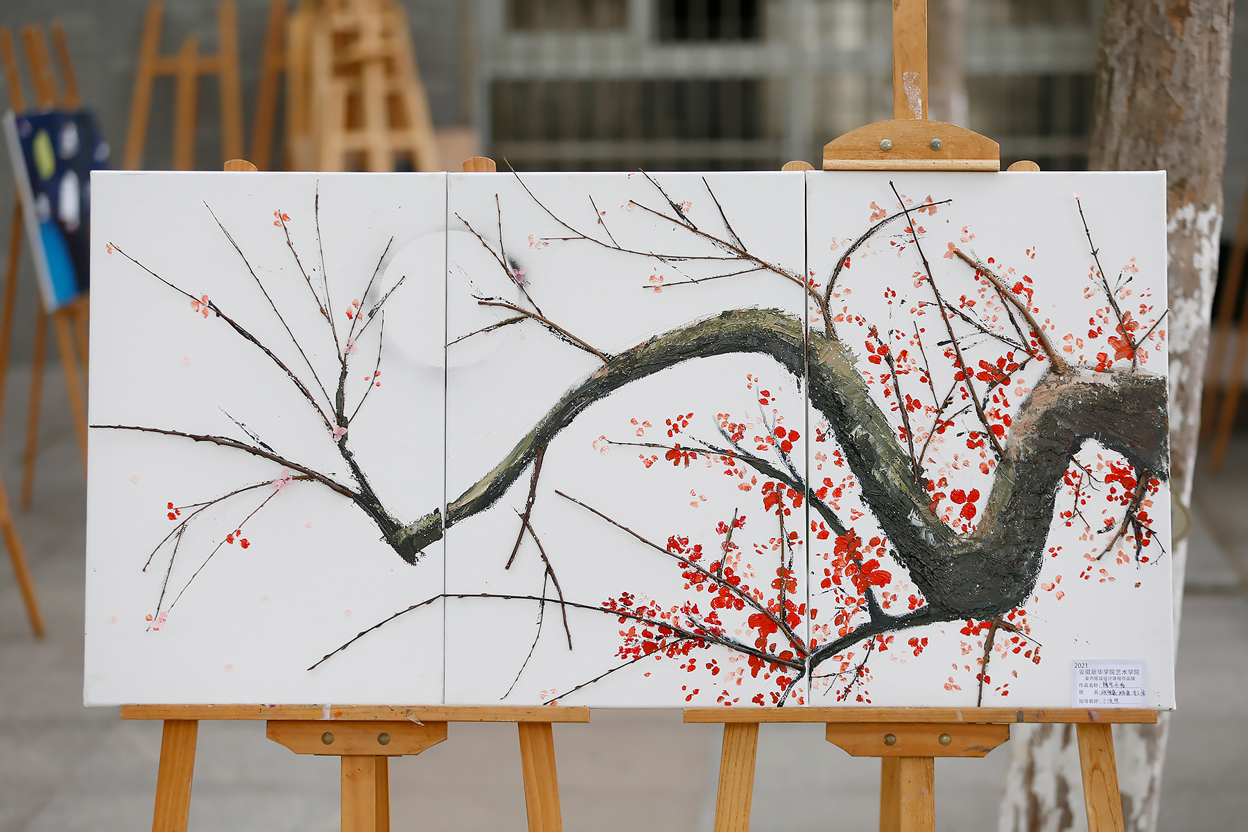 4月13日,艺术学院《室内陈设设计作品展》如期在创新大道两侧举办。此次展出作品由刁俊琴老师指导,艺术学院环境设计专业1、2、3班学生在一周内通过课上、课下结合的方式创作完成。此次展览为期3天,共展出89幅作品,包含浮雕、水墨、油画、装置艺术等表现形式,涉及新中式、现代轻奢、现代简约等多种艺术类型。