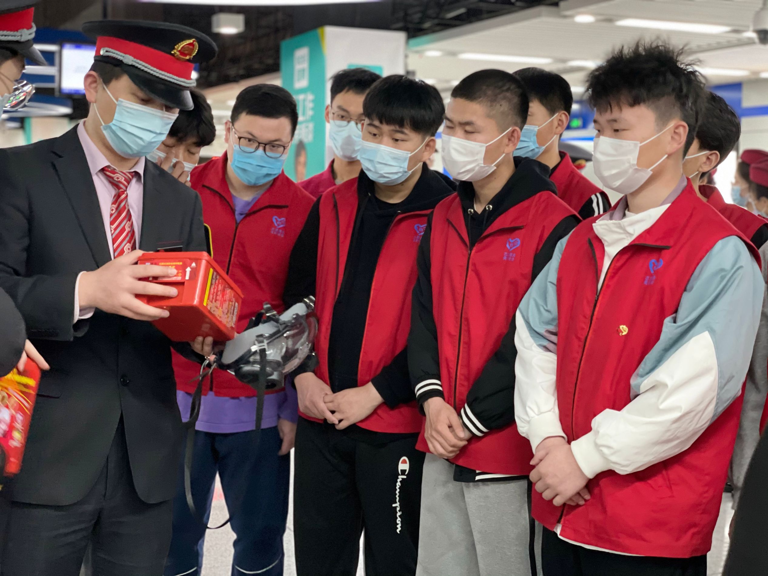 下午,“艺初志愿服务队”的15名同学在辅导员高扬老师的带领下抵达西七里塘地铁站为广大乘客服务。志愿者们在地铁二号线工作人员的带领下进行了微型消防站的使用和接发列车的流程培训。