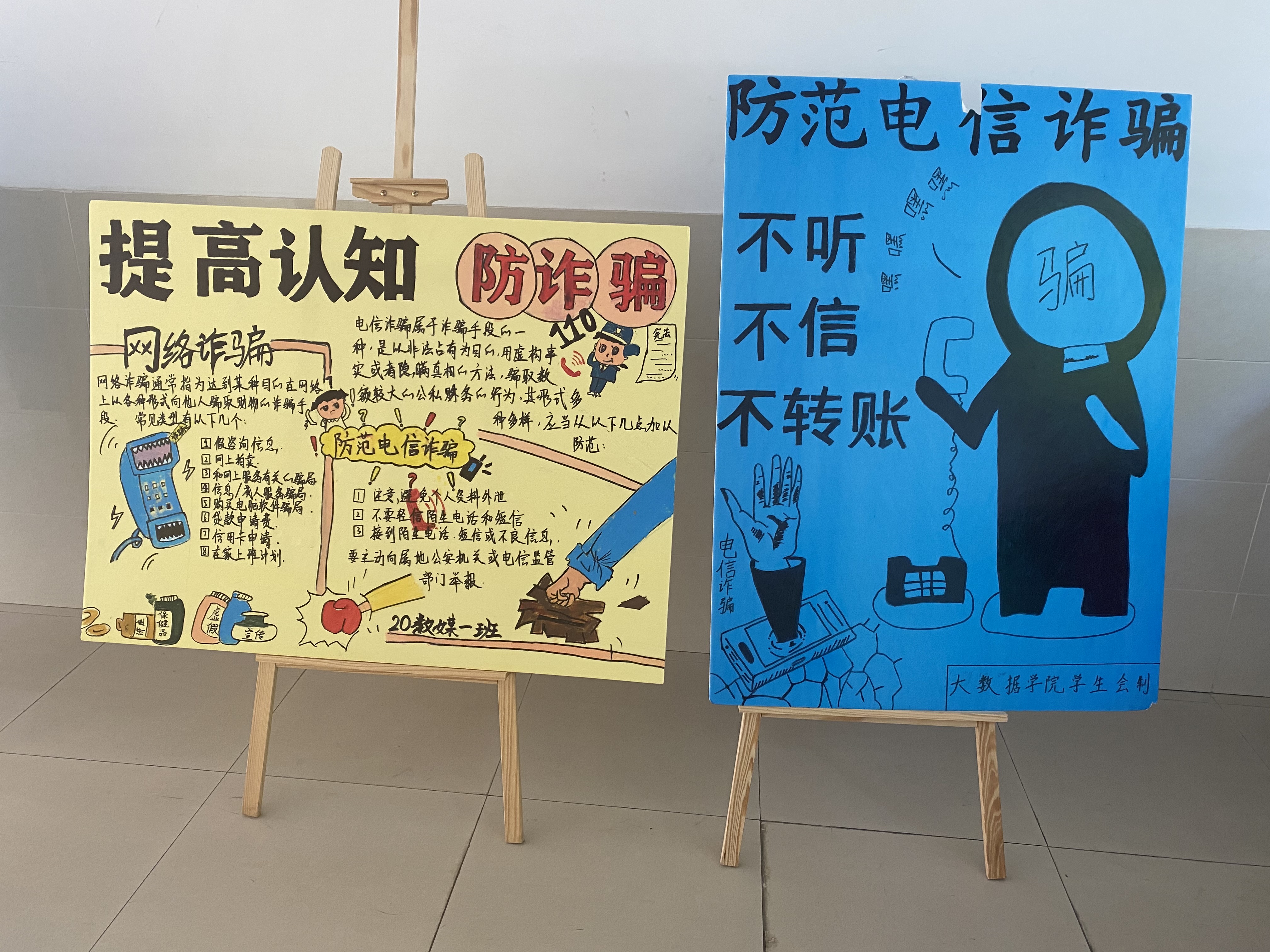 为强化学生安全意识,引导学生知辨别、懂防范,大数据与人工智能学院团总支结合主题团日活动,在全院范围内开展防电信诈骗KT板大赛。全院各班级团支部积极参与,通过板报的方式将防范知识进行展示,很好的增强了同学们辨别电信诈骗和应急处理的能力,对建设安全和谐校园具有积极的推动作用。