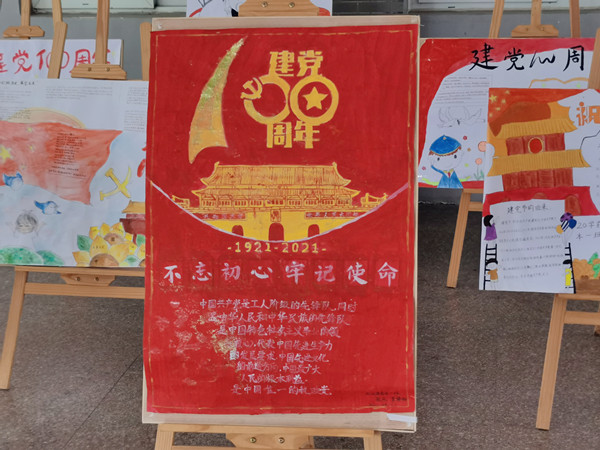 由各个班级完成的手绘报于文化与传媒学院一楼进行展出。每一幅画报都色彩鲜明、图文并茂,生动形象地突出了“喜迎建党100周年”这一主题,成为学院楼下一道美丽的风景线。