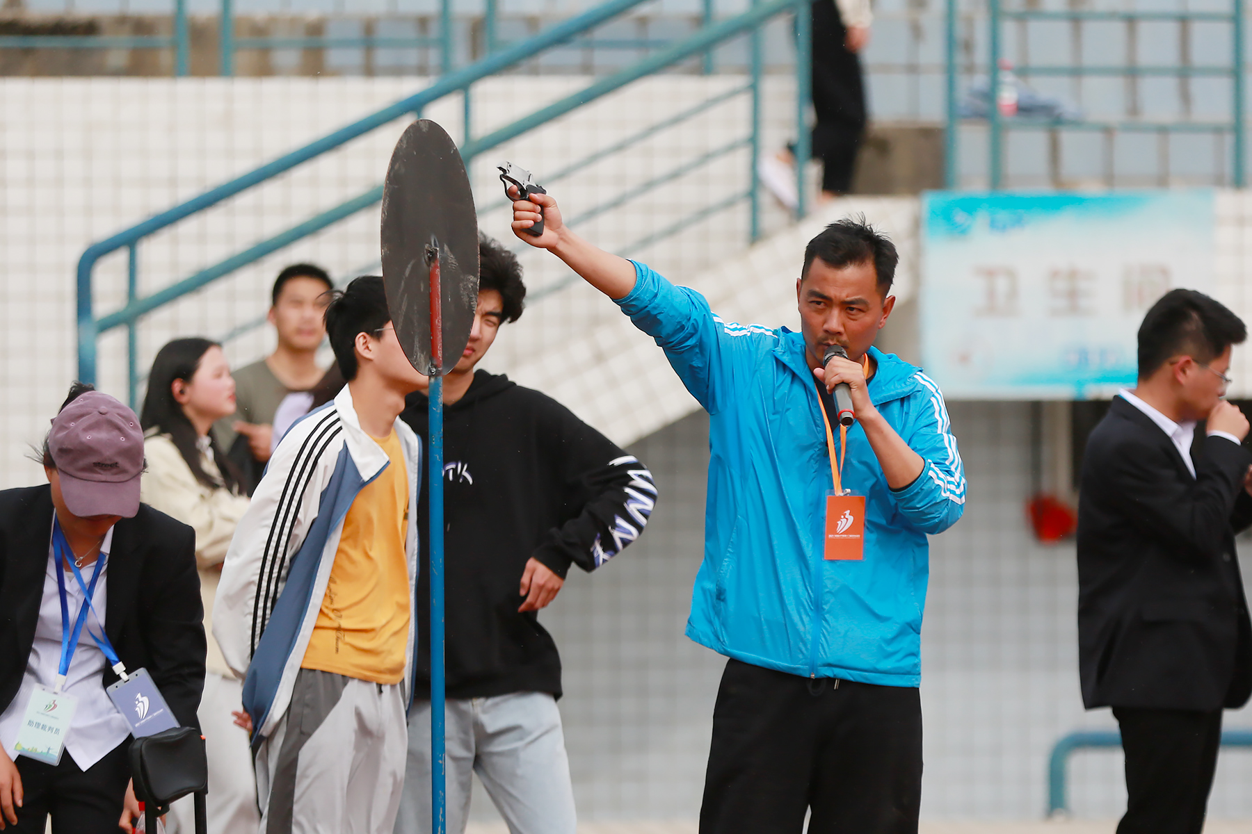 除了教师裁判外,学生裁判也是裁判员队伍的重要力量。在三级跳的赛场上有一位手持着红旗和白旗的学生裁判。他是来自大人员2019级大数据管理专业的黄青云。这是他第一次报名裁判工作,作为学生会主席的他想为运动员和裁判们加油鼓劲献出自己的力量,所以他主动报名参加了这次的裁判工作。“指令员就是挥旗示意运动员可以开始跳远还有给出成绩是否合格的判断。”因为是第一次做指令员难免有些紧张,而且是校级活动,各个院的运动员都有。“合格我会举白旗,不合格会举红旗,刚开始两个旗子可能会举错,毕竟不太熟悉。”