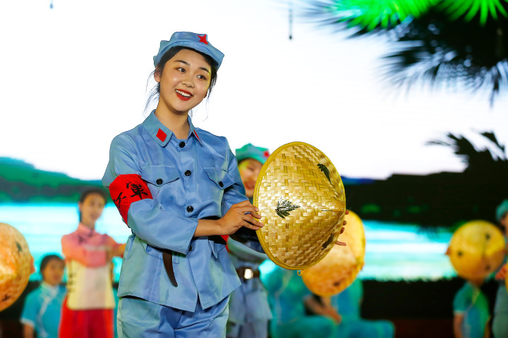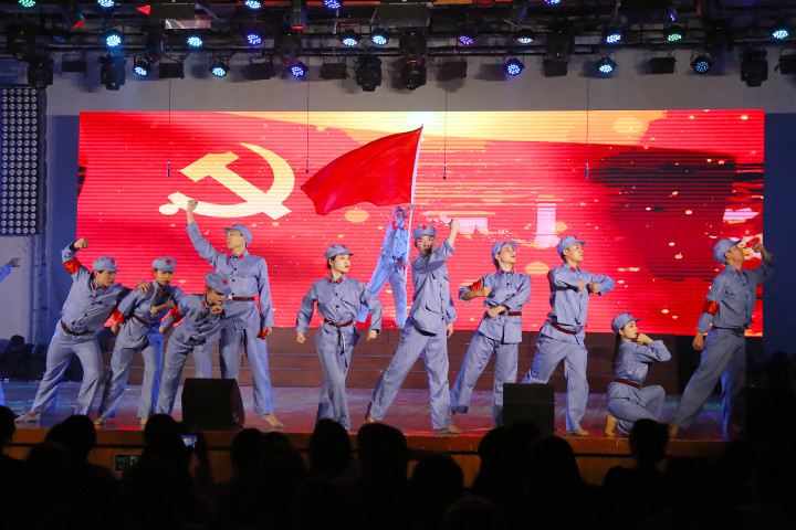 开门见山,直击主题。演出在全体演员的大合唱《追寻》中拉开帷幕。忆往昔峥嵘岁月稠,《南湖的红船》、《红军不怕远征难》、《万泉河水清又清》等表演,带我们回首我们党这百年来的艰难历程,崇敬之情油然而生。
