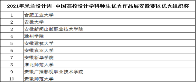 2021年米兰设计周——中国高校设计学科师生优秀作品展安徽分赛区评审工作顺利完成。bat365艺术学院学生在此次省赛中获得各类奖项16项(其中二等奖1项,三等奖3项,优秀奖12项),学校获评“优秀组织奖”。