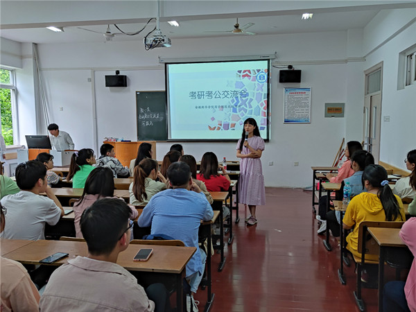 交流会开始前,助理团指导老师程梦君简要介绍本次交流会的具体情况。交流会上,2017级学长学姐们依次上台作考研考公经验分享,并从学习、生活、心态三个方面给考研同学诸多建议:学习方面,各个科目应采用不同策略,可以根据自己的情况调整做题的顺序,后期要把握有含金量的真题;生活上,调整作息情况,注意饮食和身体,以免影响考前复习和考场上的状态;心态上,要有积极的心理暗示,积极面对考研时会出现的诸多压力。学长学姐们的建议细致且诚恳,给同学们介绍具体可行的方法和需要规避的问题。