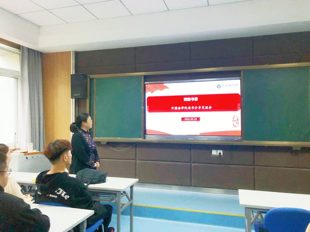 本网讯(通讯员:樊妮)为进一步营造良好的读书氛围,提升师生人文素养,打造书香校园,根据外国语学院读书工程的实施方案,5月19日,学院教师第一支部在206教室举办第三期“博韵书香”读书分享交流活动。英语系党员教师樊妮和19级商务英语专科2班全体同学参加本期读书分享交流会。