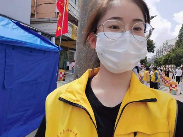 疫情当前,程嘉瑞毅然选择投身社区疫情防控工作。在核酸检测点,她主要负责为群众发放排队号码、进行社区居民的信息登记等工作,为六次核酸检测保驾护航,提供全方位的保障。令她印象最深刻的,当属帮助老奶奶进行核酸检测的时候。老奶奶一手拄着拐杖,双腿颤抖,头发苍白,身旁无人陪伴,虚弱地寻求程嘉瑞的帮助。程嘉瑞搀扶着老奶奶,陪伴老奶奶一步一步登记信息。做完核酸,她看着奶奶回家,内心五味杂陈。她表示,老奶奶是庞大弱势群体的缩影,她们在紧要关头需要帮助,而作为一名共青团员和入党积极分子,她有责任协助他们解决困难。