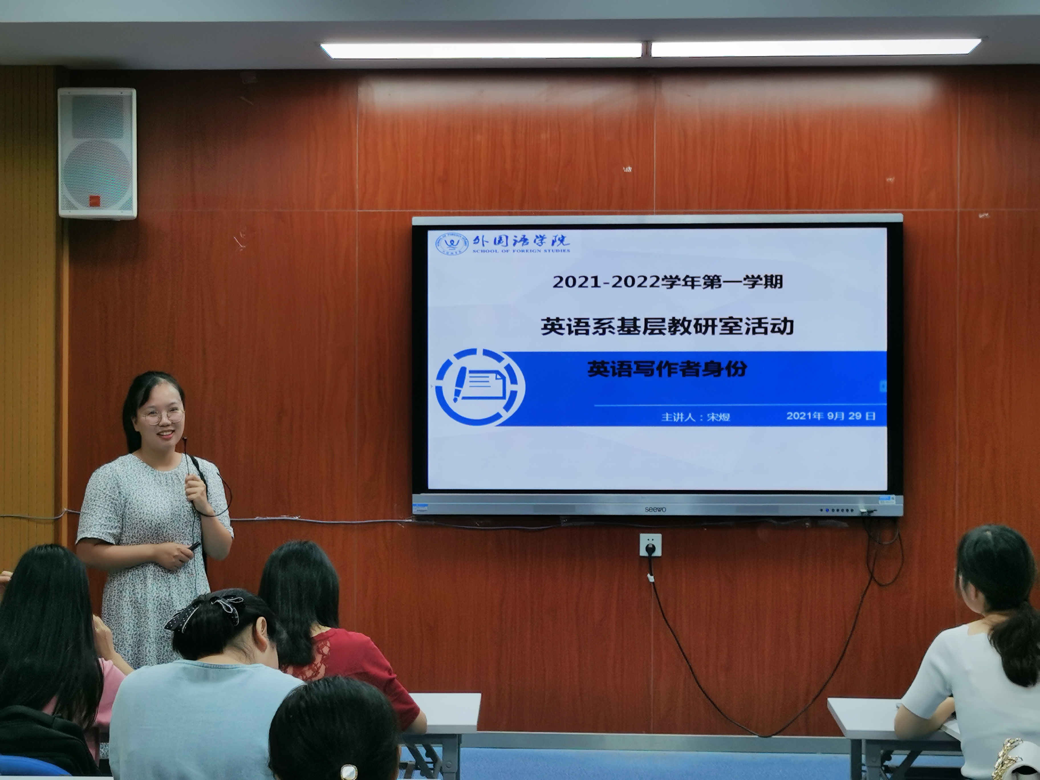 本网讯(通讯员:宋煜)为了体现基层教学组织的引领作用,促进教师科研能力和水平的提升,外国语学院英语系于9月29日下午开展了学术论文专题分享活动。本次活动的主讲人为宋煜老师,英语系主任郭丽以及英语系全体教师参加了此次交流活动,会议由系骨干教师周晓春主持。