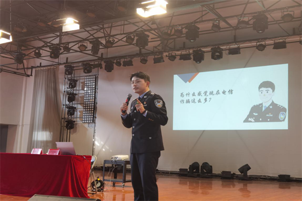 讲座中,杨础提出,打击网络犯罪,保护人名群众远离电信诈骗,是目前警方工作的重中之重,需要公安部门与广大同学的共同努力。他用生动幽默的语言从“什么是电信诈骗”“易受骗人群特征”“常见诈骗形式”“如何识别与防范”四个方面,为同学们详细讲解了相关知识。杨础指出,目前电信诈骗的形式是多种多样的,但不外乎以短信、电话、网络平台为媒介。结合即将到来的某网站“双十一”购物节,他提示同学们在网络购物时,面对自称客服人员、快递人员的陌生来电与信息,应当通过正规渠道进行核实,不可轻易相信。以常见的“兼职刷单”“杀猪盘”“中奖短信”类骗局为例,杨础告诫广大同学,天下没有免费的午餐,不可怀有贪小便宜的侥幸心理。最后,杨础鼓励同学们日常多关注了解关于防电诈主题的学习活动,并留下联系方式欢迎同学们咨询交流。