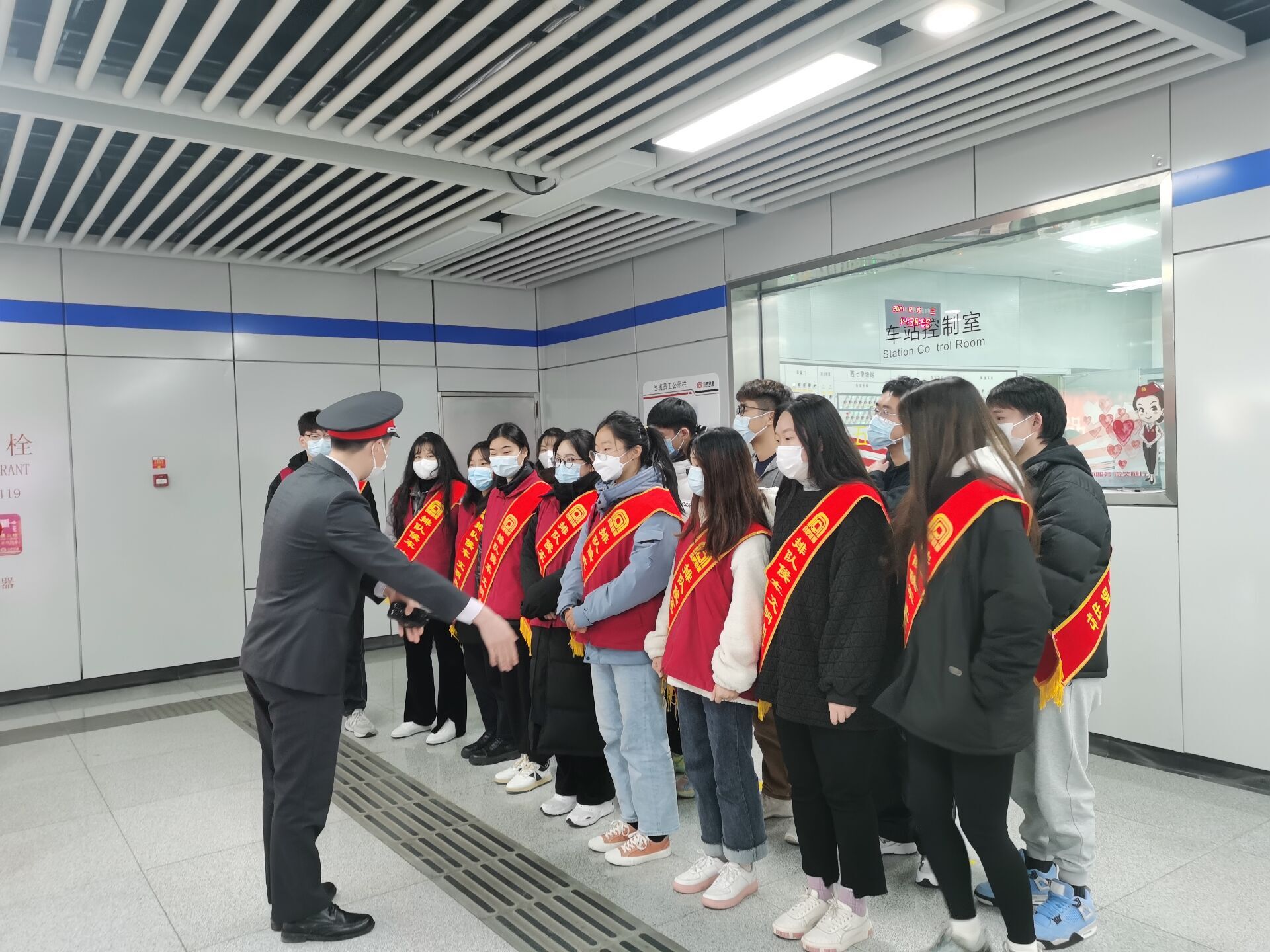 活动前,同学们认真学习了地铁志愿服务过程中的相关要求和注意事项,本次服务工作主要包括指引乘客售票机购票、协助车站查验健康码、帮助乘客进出闸机、引导乘客“先下后上、排队候车”、主动帮扶行动不便的乘客上下车等。