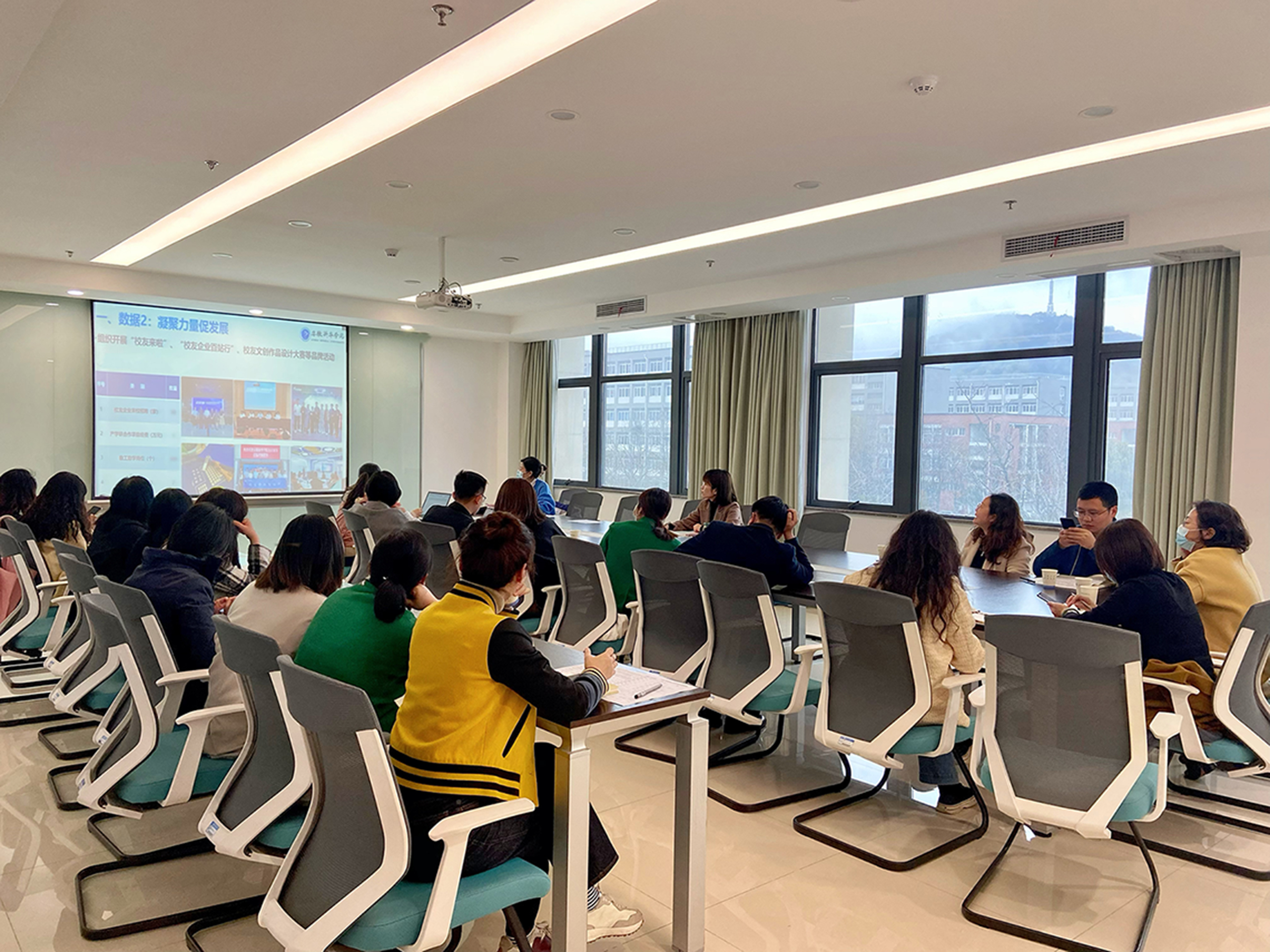 最后,芮萍对大家为校友工作的辛勤付出表示衷心的感谢,并强调一要加强组织领导,积极调动各方力量,充分发挥资深专业教师的作用,深耕校友资源;二要增强校友服务意识,运用母校平台帮助校友成长进步,助力校友与母校共同发展;三要注重培养在校生的校友意识,将校友工作融入二级学院日常的学生管理及教育教学工作中,形成“校友+”的工作模式。