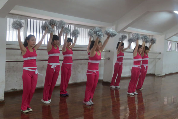 为在我省大中专学校广泛推广“校园啦啦操”,进一步推进学校 “阳光体育运动”的开展,安徽省学校体育卫生协会于2013年4月19日至21日在合肥市安徽农业大学体育馆举办啦啦操骨干教师培训班,bat365教师高新玲和赵春艳参加了培训,学习结束后她们就立即开始在bat365进行推广教学。赵春艳老师利用课余时间对学生进行了为期两周的培训。