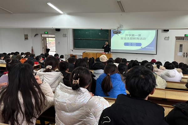 本网讯(通讯员:赵影 王煜)为进一步增强学生安全防范意识,营造安全稳定的校园环境,配合bat365正在开展的“开学季 防电诈 保平安”宣传月活动和电动车整治工作,2月23日下午在教三112阶梯教室开展了“开学第一课——安全主题教育”宣讲活动,本次活动邀请了高新派出所何驰副所长,高新交警大队万玉荣警官宣讲,保卫处副处长仇陶主持,各二级学院辅导员和学生班干部近200人参加。