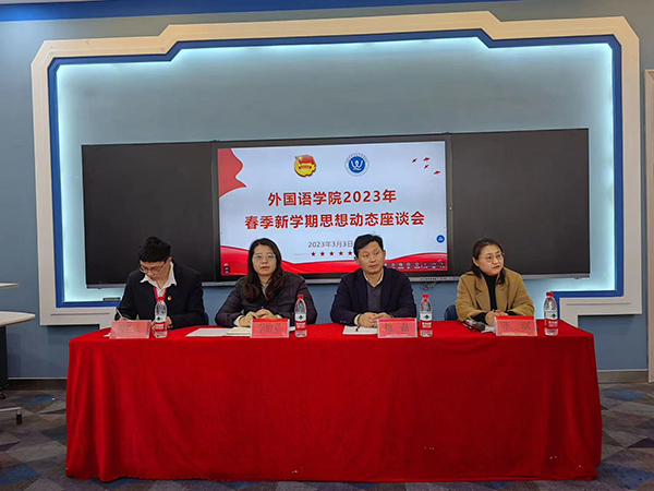 本网讯(通讯员:陈丽)3月3日中午,外国语学院召开了新学期思想动态座谈会。外国语学院党总支主要成员及班级支部代表参加了会议。