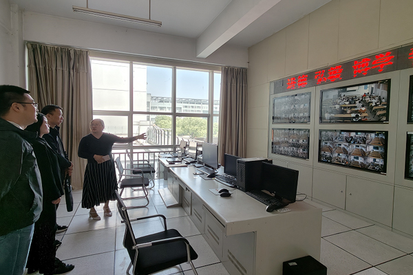 马巍介绍了安徽建筑大学本科教育教学审核评估自评自建情况,重点交流了在本科教育教学审核评估组织实施、自评报告撰写以及支撑档案建设等方面的做法。座谈中,评建办、教务处相关工作人员与对口负责人就各自岗位工作,围绕审核评估工作中人才培养目标的达成度、常模数据、线上考察硬件条件、微专业等方面进行了深入交流。随后,考察学习小组一行实地走访了安徽建筑大学的智慧教室、实验实训室。