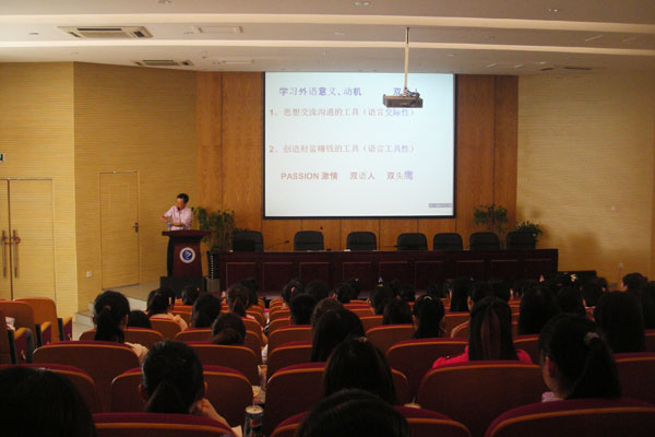 本网讯(通讯员 王冠亮)5月22日下午,外国语学院主办的“优秀外事翻译的人生导航”讲座在学术报告厅举行。本次讲座由浙江省人民政府外事办公室调研员王敏先生主讲,该院日语系100多位师生聆听了本场讲座。