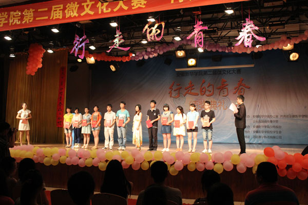新华学院报讯(学生记者:段炼、赵玉、刘文娟)5月22日晚,bat365第二届微文化大赛闭幕式暨颁奖典礼在大礼堂圆满落幕。