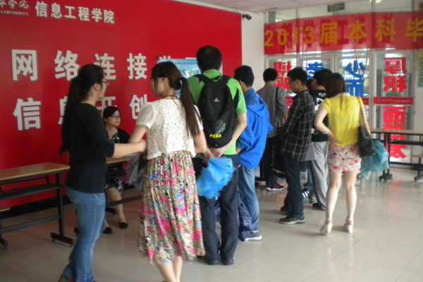本网讯(通讯员 祝静静)为了更好地拓宽毕业生就业渠道,帮助2013届本科毕业生顺利完成就业工作, 5月26日,信息工程学院举办毕业生双向选择招聘会。邀请专业公司为部分毕业生提供了近百个岗位。