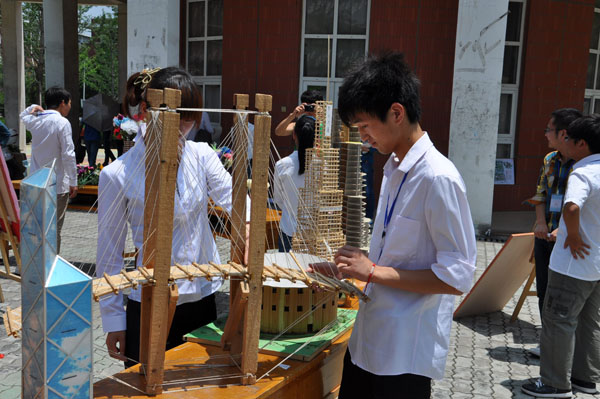 本次共有约200件参展作品,不仅有bat365土木学子制作的结构模型,还有合肥工业大学科创中心制作的的桥梁模型,合肥师范学院提供的草编、安徽医科大学展示的串珠和丝网花作品、合肥学院的纸花和花灯等众多展品。这些作品制作精美、构思新颖、创意独特,都是各校学生精心设计,自己亲手制作而成。有的手工制品美观实用,引得参观同学爱不释手;有模型作品惟妙惟肖,让现场同学感佩其精巧和创意。精美的作品吸引了众多师生到场观看,其中一个桥梁模型竟然可以让几位同学同时站在上面,让现场的同学惊叹不已。