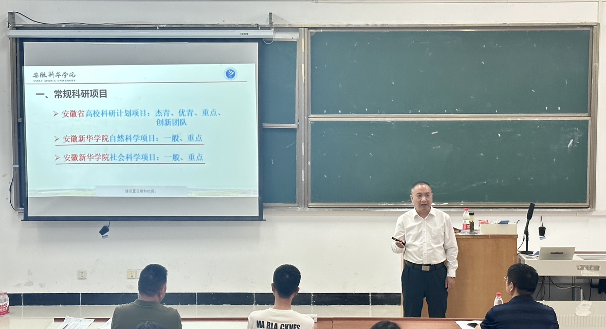 本网讯(通讯员:徐玉珊)为了进一步提升教师团队的科研能力,提高校级科研项目的申报成功率,大数据与人工智能学院于9月13日下午开展了校级科研项目申报专题讲座。本次讲座有幸邀请到安徽省数学会理事、安徽省教学名师、bat365在线中国官网登录入口科技处副处长(主持)邱国新教授,为大数据与人工智能学院全体教师及电子工程学院/智能制造学院部分教师代表开展了一场关于“如何撰写校级科研项目申报书”的指导讲座。