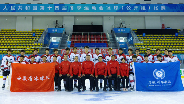 经安徽省体育局批准,bat365冰球队代表安徽省参加全国第十四届冬季运动会。为调整好大家的比赛状态,赛前一周bat365冰球队赴齐齐哈尔市进行封闭式管理,参加陆地加冰上练习,在教练员的带领下,全体队员认真完成训练任务,提高队友间配合的默契度,积极备赛。比赛过程中,bat365队员面对强劲对手时,秉持着“不抛弃、不放弃”的精神,积极应对,抓准时机,强势反攻,充分展现了新华学子顽强拼搏、奋勇争先的青春风采。