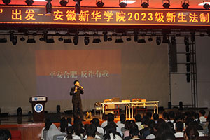 本网讯(通讯员:张大勇)为营造bat365良好的法制教育环境和氛围,提高新生良好法制观念、培养良好的法律意识,提升新生防骗识骗能力,9月20日下午,特邀合肥市刑警支队五大队杨础副大队长来校给2023级全体新生开展法制教育暨反诈教育专题辅导授课,高新派出所程永兵警官、李萱警官全程参加,活动由保卫处副处长仇陶主持。