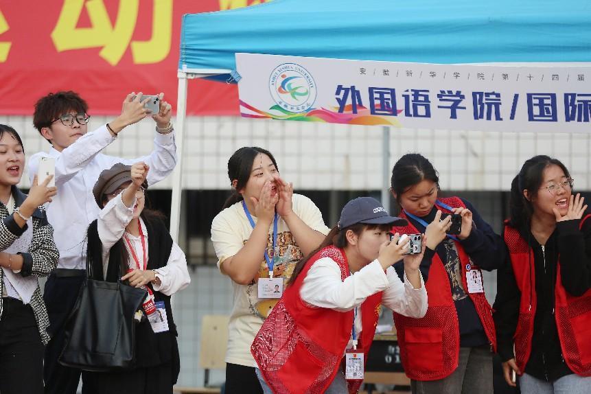 他们穿着红色马甲在运动场上来回穿梭,他们向我们展现出了新华学子乐于奉献,友爱互助的优秀品质。