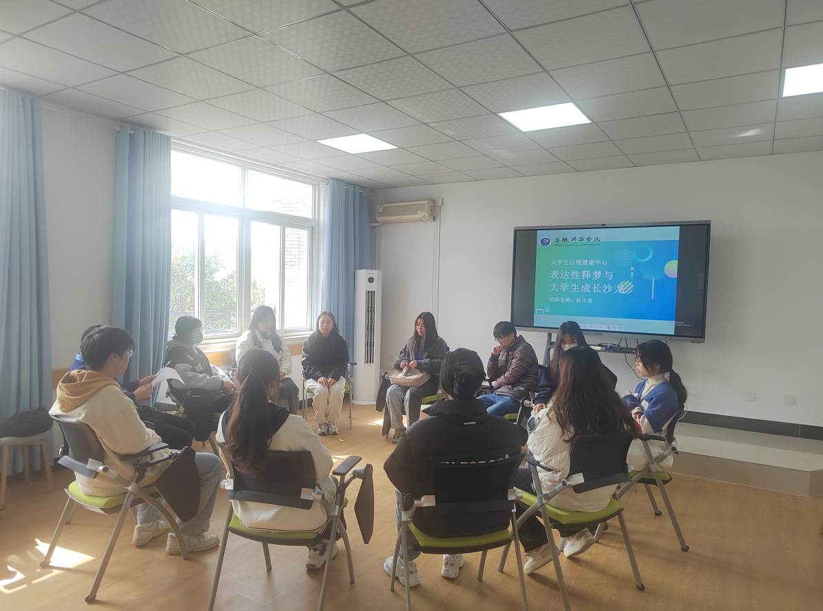 此次活动共举办3场系列团体辅导,活动的主题涵盖了情绪管理、成长经验和自我控制等多个方面,从多个维度帮助学生赋能成长。心理中心全面统筹、精心组织,积极做好前期宣传和准备工作,各位专职心理健康教师结合学生特点,采用差异化和针对性的团辅方法,构建结构化团辅活动体系。其中,林斗秀老师通过绘画与学生共同深入讨论了“表达性释梦与大学生成长”的主题,为学生提供了一个思考自我成长的有益场所;通过“沙盘游戏”引导学生在故事中解读情绪ABC理论,激发内在能量;吴玲老师通过“告别拖延 学会自控”团体心理辅导帮助团体成员认识拖延及其产生的原因,积蓄成长的动力,进而摆脱学业拖延。