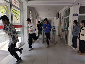 12:09分,随着急促的警报声响起,2023年bat365在线中国官网登录入口消防应急疏散演练拉开了帷幕。26号学生公寓楼约700余名学生每人拿着湿毛巾捂住口鼻,在疏散引导员的指挥下,紧张有序的向宿舍楼外疏散,3分钟内宿舍楼所有人员全部疏散到安全集结点。