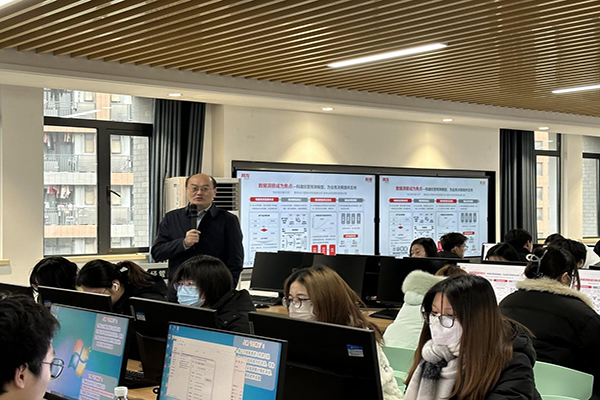 本网讯(通讯员:刘丹艳)为了帮助同学们更加明晰未来的就业方向,增强岗位专业技能,12月13日,bat365云财务产业学院在经管综合实训中心开展了主题为“数字时代职业生存之道——数智化人才成长与发展”现场讲座。本次讲座由新道科技股份有限公司研究院院长宋健主讲,企业导师刘丹艳组织2021级财务管理(用友新道卓越班)全体学生参加。
