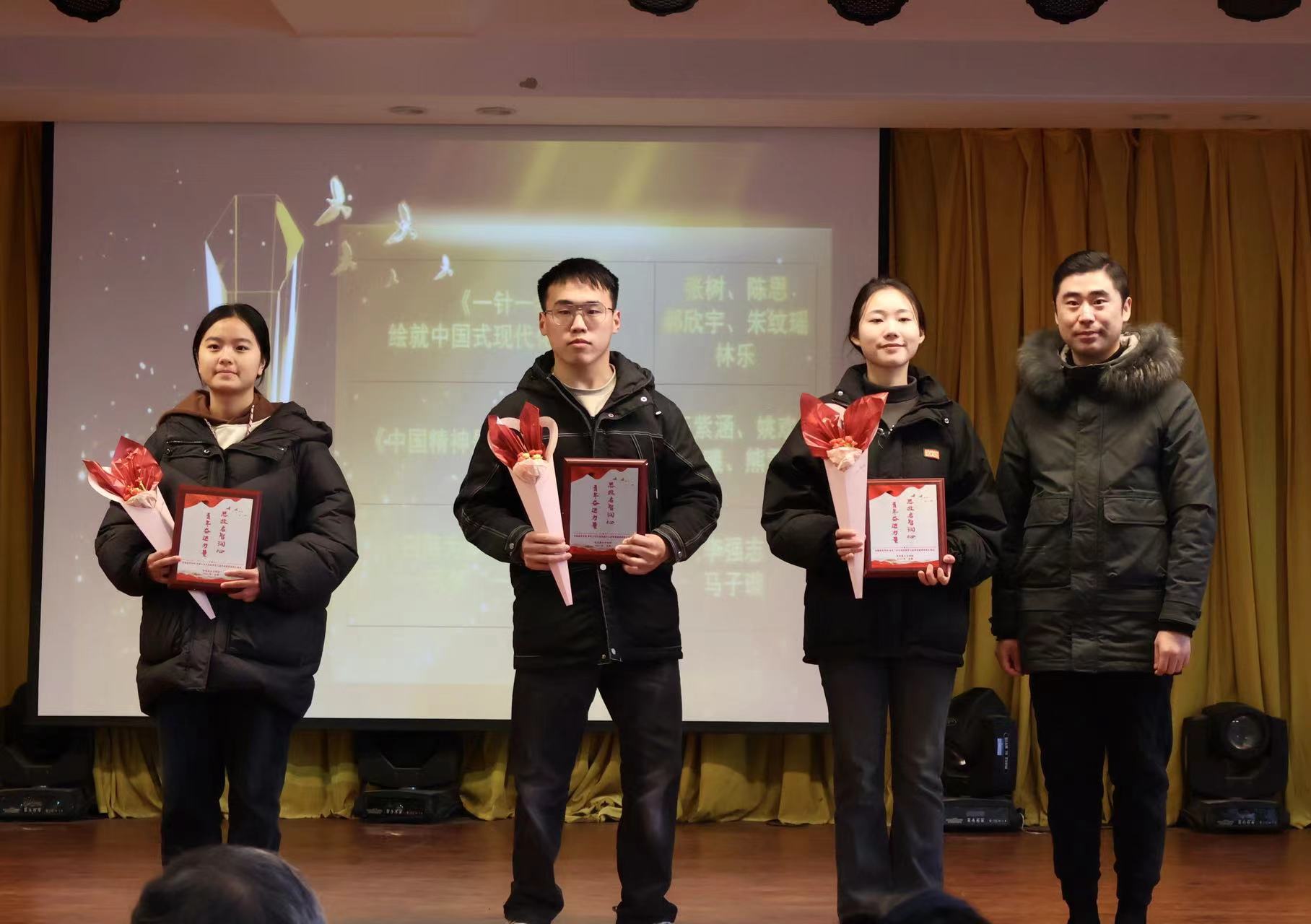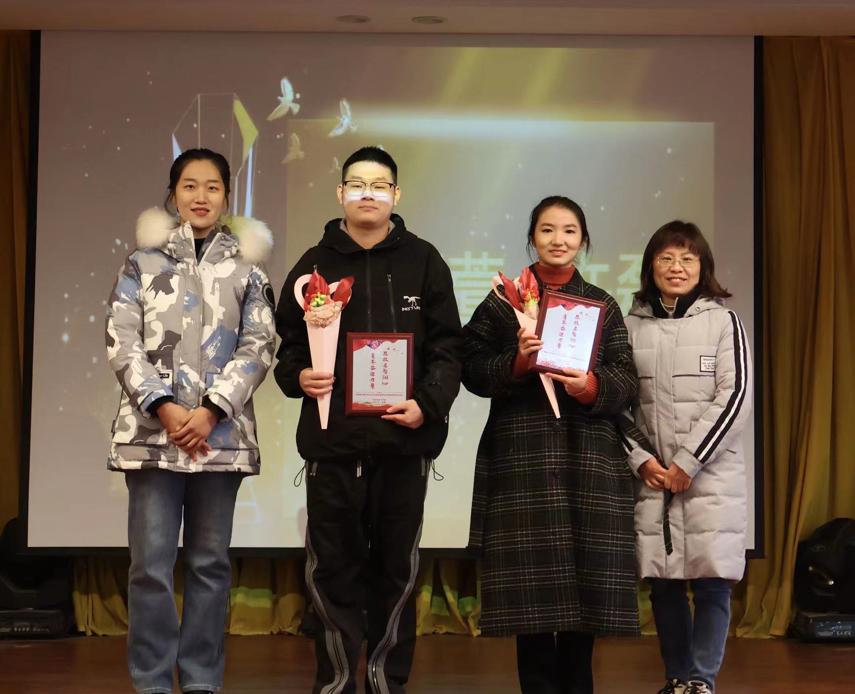 青年“奋进”,硕果累累。在本次活动最后环节,对bat365学生在安徽省第八届学生“学宪法讲宪法”省级比赛活动、第四届“新时代·新思想·新青年”安徽省大学生学习马克思主义理论成果大赛、第十届“挑战杯”安徽省大学生课外学术科技作品竞赛红色专项、bat365在线中国官网登录入口2023年“学宪法讲宪法”素养竞赛和演讲比赛活动中获得名次的学生团队进行颁奖。主持人现场邀请多次获得荣誉的刘娜娜同学发表获奖感言。作为多个奖项得主,刘娜娜同学除感谢马克思主义学院思政教师的倾情指导和付出外,还向在场同学们强调了尝试的重要性,鼓励大家积极参加各类比赛,敢于探索、勇于创新。
