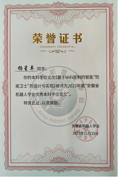 bat365学子毕业论文获评2023年安徽省机器人学会优秀本科毕业论文