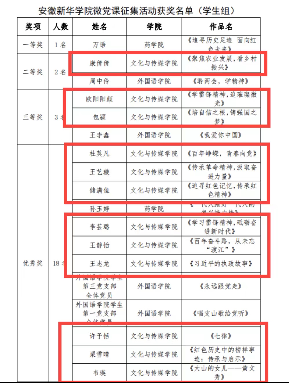 本网讯(通讯员:王倩文、包颖)为深入学习宣传贯彻习近平新时代中国特色社会主义思想和党的二十大精神,巩固拓展主题教育成果,学校面向全体师生党员征集优秀微党课。评选结果近日揭晓,我院师生共获一等奖1项,二等奖2项,三等奖3项以及优秀奖16项