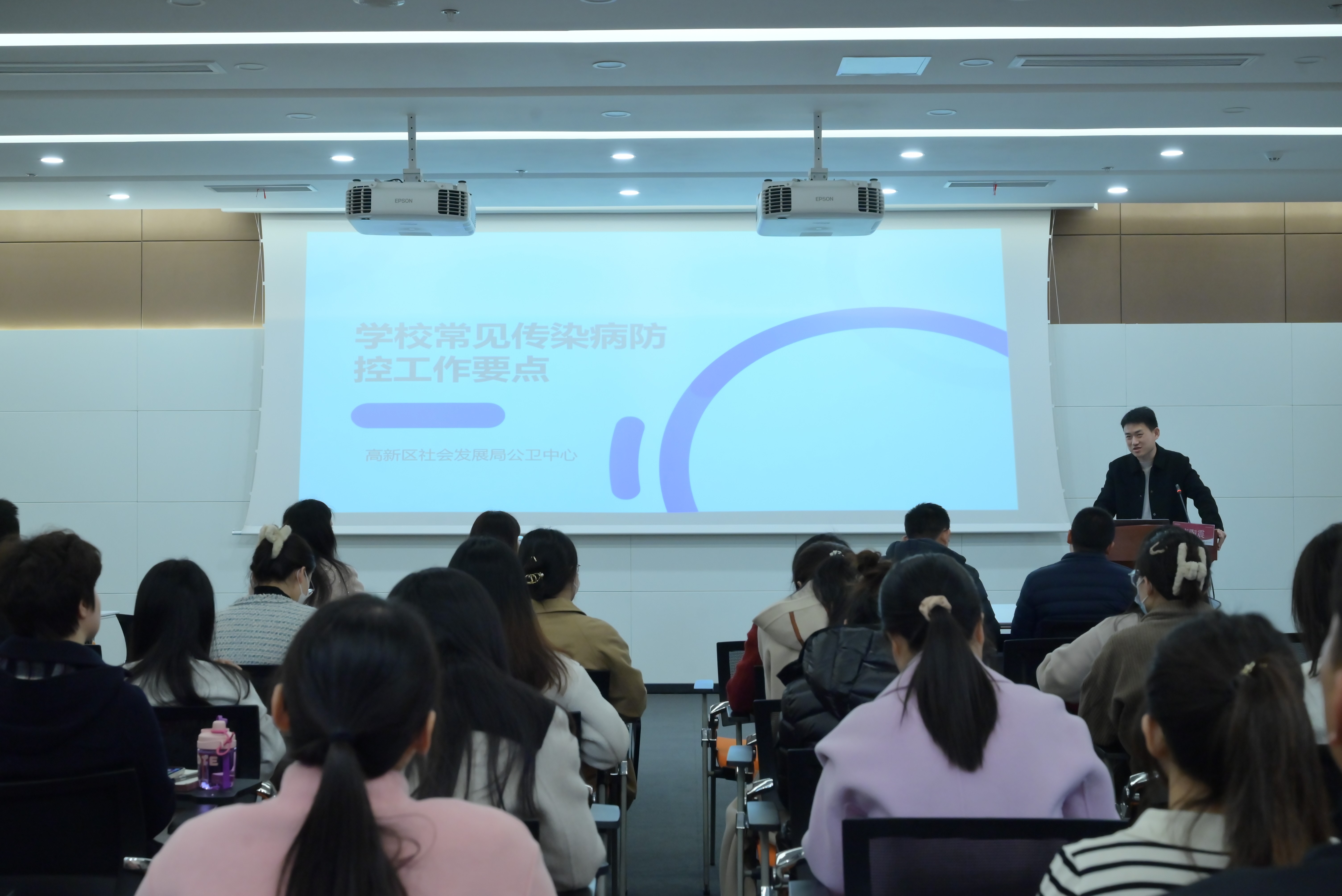本次培训共包含《学校常见传染病防控工作要点》、《大学校园反诈专题课》两项业务培训以及《高校辅导员职业能力提升》专题讲座。首先,合肥市高新区社会发展局公卫中心公共卫生主治医师陶震给学工人员开展了传染病防控方面的培训,他作为一名从事多年疾控工作医护人员总结了校园常见传染病防控工作的重点和要点,分享常见传染病的防控防治方法以及发现相关病症时的正确处理方式,为bat365学工人员提供了传染病防控工作的科学方法。