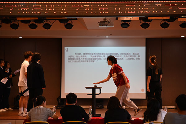 首先,兄弟社团松欧梦乐社的一曲《不染》为比赛现场增添了一丝古风之韵。接着成语大会评审团总负责人彭智为本次大会致词并宣布活动启动,王璀宣读赛制及规则,参赛选手们抽签分组,个个蓄势待发。